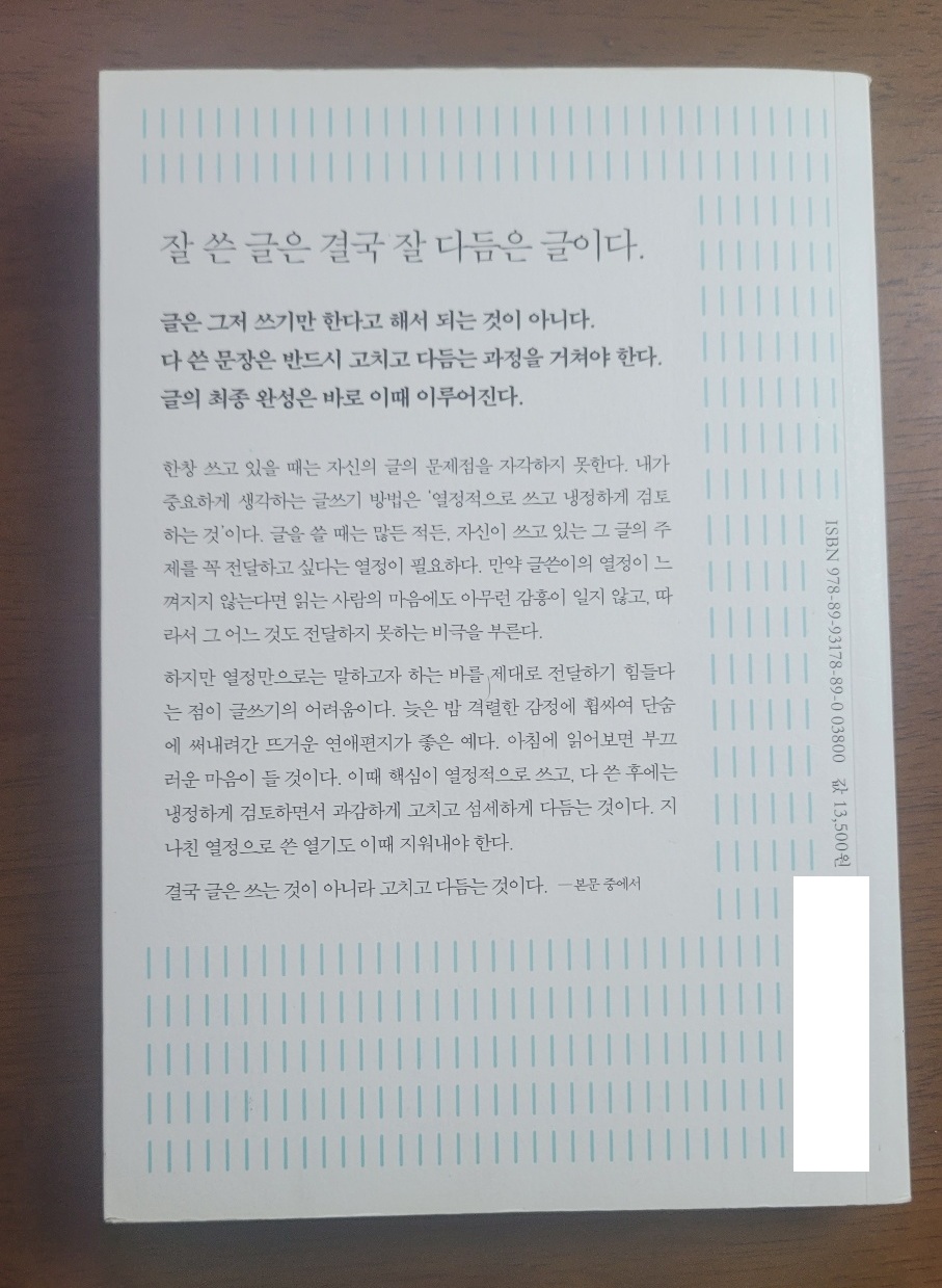 책을 덮으며 느꼈습니다. 결국 글은 **처음부터 잘 쓰는 것**이 아니라, **쓰고 나서 더 좋게 만드는 것**이라는 사실을요. 저처럼 글에 자신 없는 분들께 꼭 권하고 싶은 책입니다.