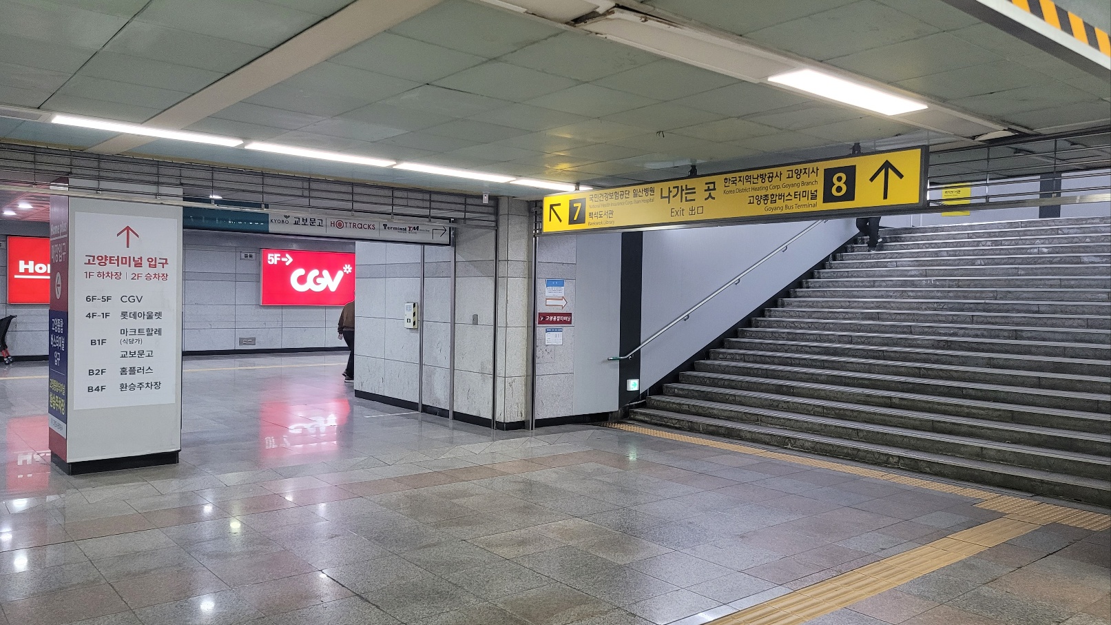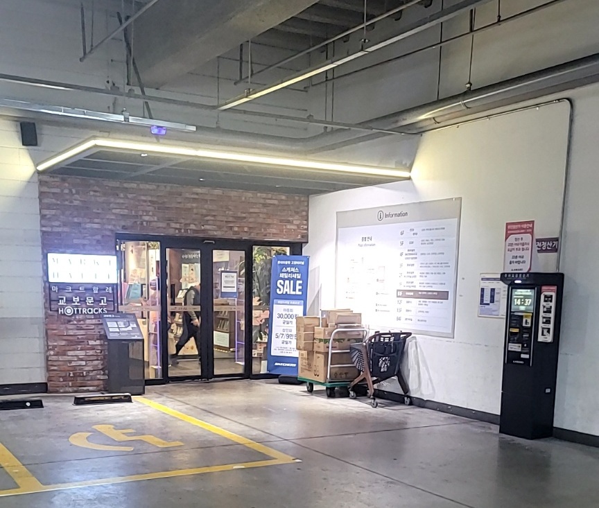고양터미널 주차장 또는 롯데백화점 주차장을 이용할 수 있어요. 서점 구매 후 영수증 제시 시 2시간 무료 주차 가능했습니다. 주차장에 도착하면 바로 연결된 입구가 있어요.