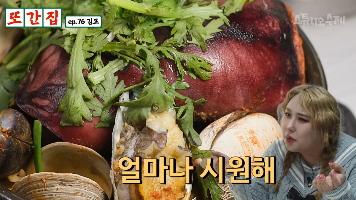 제가 선택한 메뉴는 풍자의 또간집에서도 극찬했던 ‘통영 해물뚝배기’였습니다. 조개, 새우, 오징어 등 해산물이 한가득 들어간 국물은 깊고 시원했습니다. 해물 본연의 감칠맛이 가득했고, 반찬도 김치, 오징어무침, 무생채까지 다양하게 제공되어 집에서도 정식 느낌을 받았죠. 근데 사실 오징어무침 이거 정말 맛있어요. 생각보다 속이 쓰릴 정도로 매운데 이거 정말 맛있네요!!!