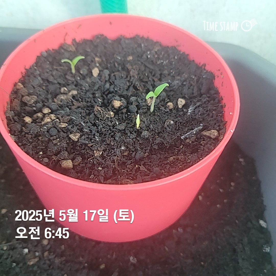 5월 초, 다이소에서 2,000원에 구매한 방울토마토 키트를 활용하여 방울토마토 키우기를 도전하였습니다. 상추를 키우던 화분 옆 공간을 활용해 볼까 합니다. 씨앗은 일단 키트의 화분을 활용하고 옮겨 심었어요. 현재는 본잎 3~4장 정도 자란 상태고요.