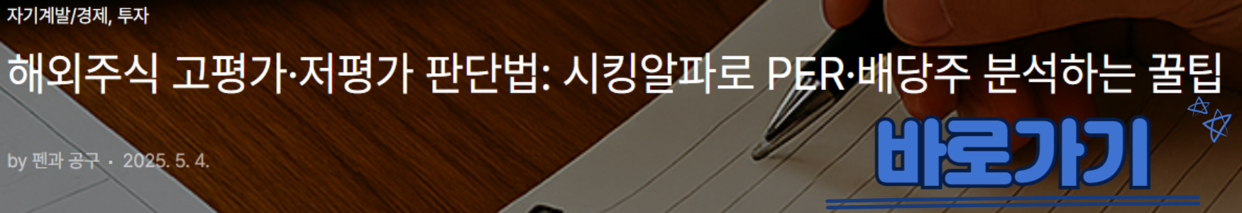 | 해외주식 고평가·저평가 판단법: 시킹알파로 PER·배당주 분석하는 꿀팁 (60) | 2025.05.04 |