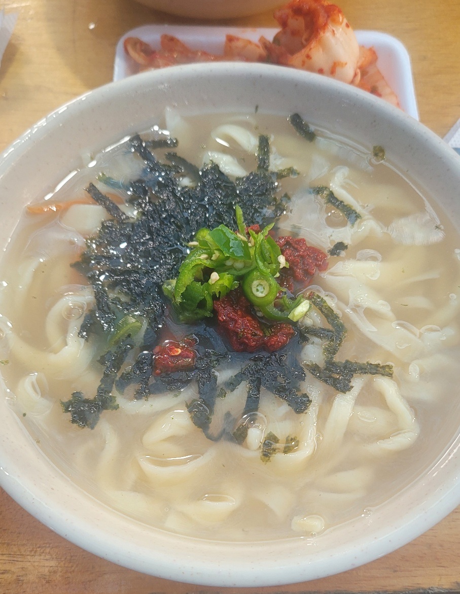 시장 입구 쪽에서 사람들로 북적이는 작은 식당 하나가 눈에 들어왔습니다. ‘영진이네 칼국수’. 손칼국수에 멸치육수를 베이스로 한 국물이 기가 막히게 깊고 구수했습니다. 김이 모락모락 나는 칼국수 한 그릇에 온몸이 녹아내리는 기분이 들었어요.