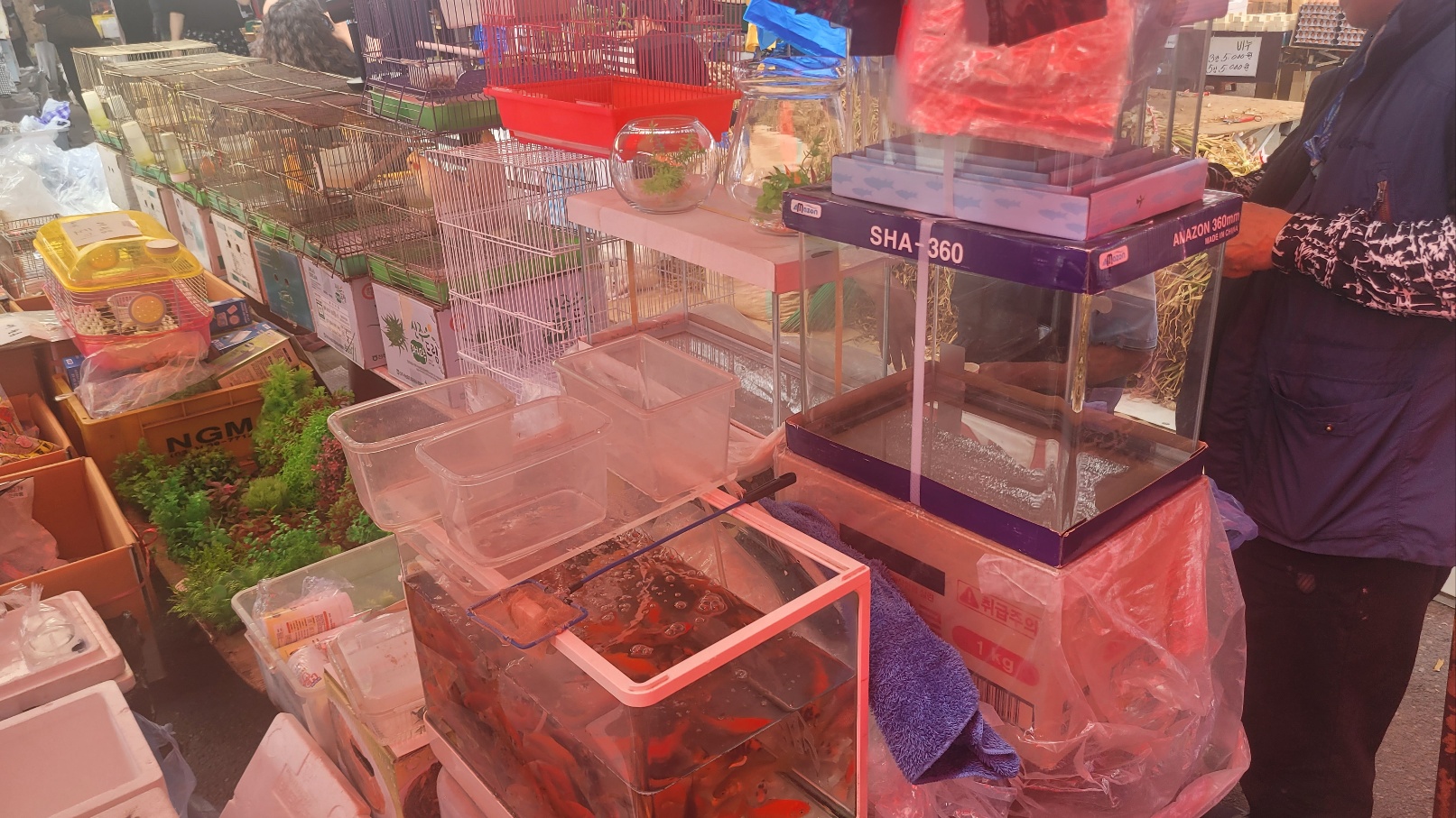 그냥 좀 신기해서 구경하고 갔습니다. 금붕어 들과 앵무새들을 판매하고 있더라고요. 그냥 재미 삼아 구경하고 갔습니다. 저는 저런 거 못 키웁니다.