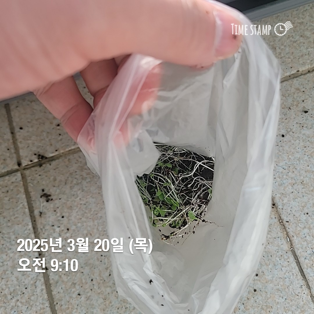 3월 20일, 어느새 새싹이 우후죽순으로 자라났습니다. 이대로 두면 경쟁이 치열해져 모두가 약해질 수 있어, 상태가 좋은 새싹만 남기고 나머지는 과감히 솎아냈습니다. 솎아낸 새싹은 아깝지만 건강한 성장을 위해 필요한 선택이었습니다.