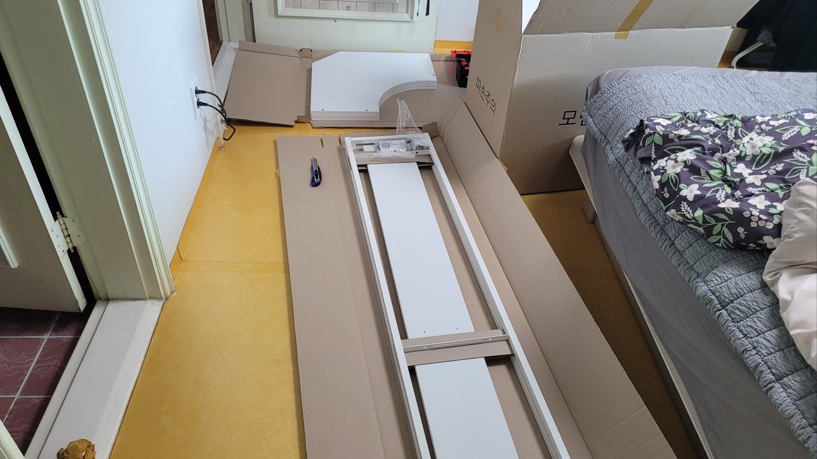 처음 배송되어 막막했던 느낌보다 쉬웠다는 생각이 듭니다. 처음에 배송 온 박스를 사진 찍어 와이프에게 보내니 와이프는 빠르게 숨고에 검색을 해 8만 원 정도의 견적을 받았더라고요. 사실 제 생각에는 성인 남성 혹은 여성과 초등학생 정도 아이 한 명이면, 길어도 3시간 안에는 모든 조립이 가능할 것 같습니다. 아마 전문 기사님은 1시간도 안 걸리시겠지만요.