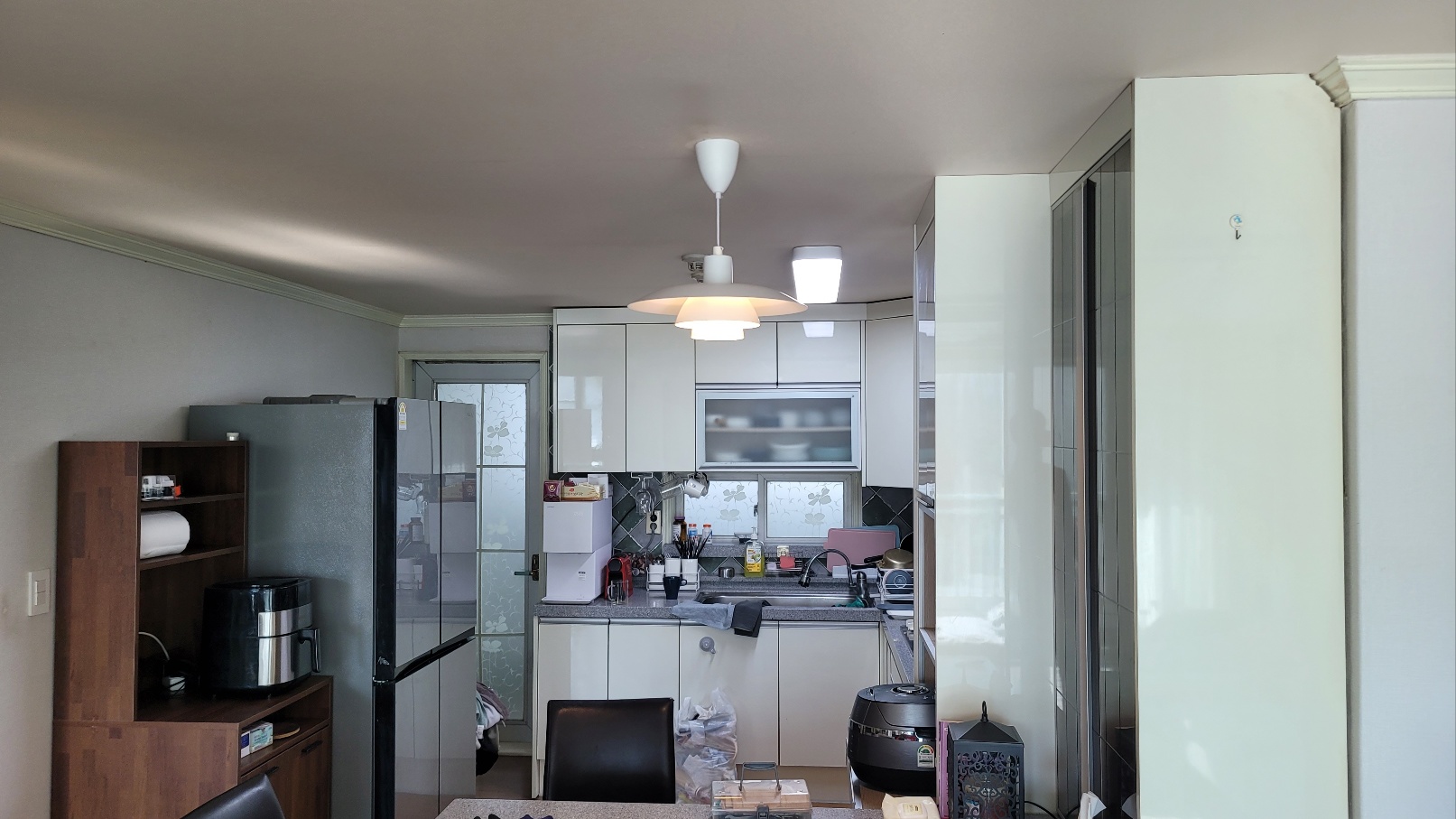 주방 조명 하나로 분위기를 바꿉니다.