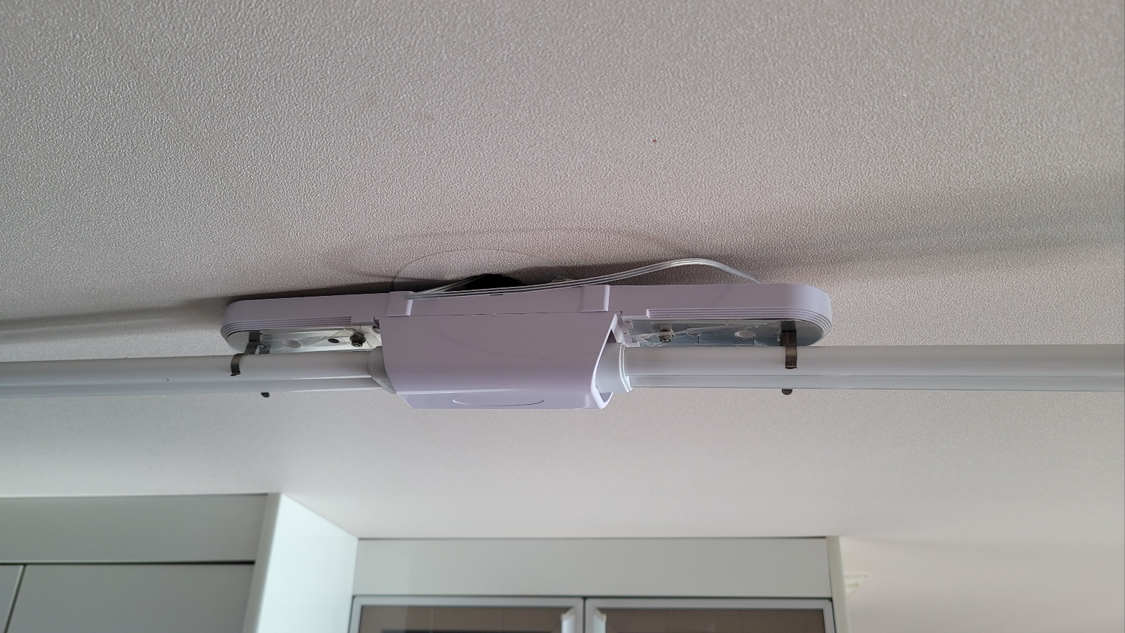 그리고 제가 구매한 조명은 배선 길이가 매우 길어 길이를 조정해서 조명 높이를 조정하는데요. 길이를 조정해서 배선을 고정하는 어떠한 장치도 확인이 되지 않아 순간 고민을 했지만, 아주 무거운 조명은 아니기에 배선을 묶어서 케이블 타이로 고정하여 지탱하게 했습니다. 그렇게 하고 프레임 가림막으로 마무리하였습니다.