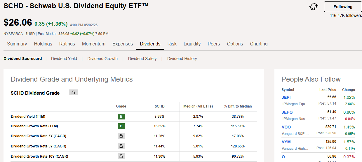 • SCHD: 3.99% / ETF 중간값: 2.87% / 차이: +38.78%