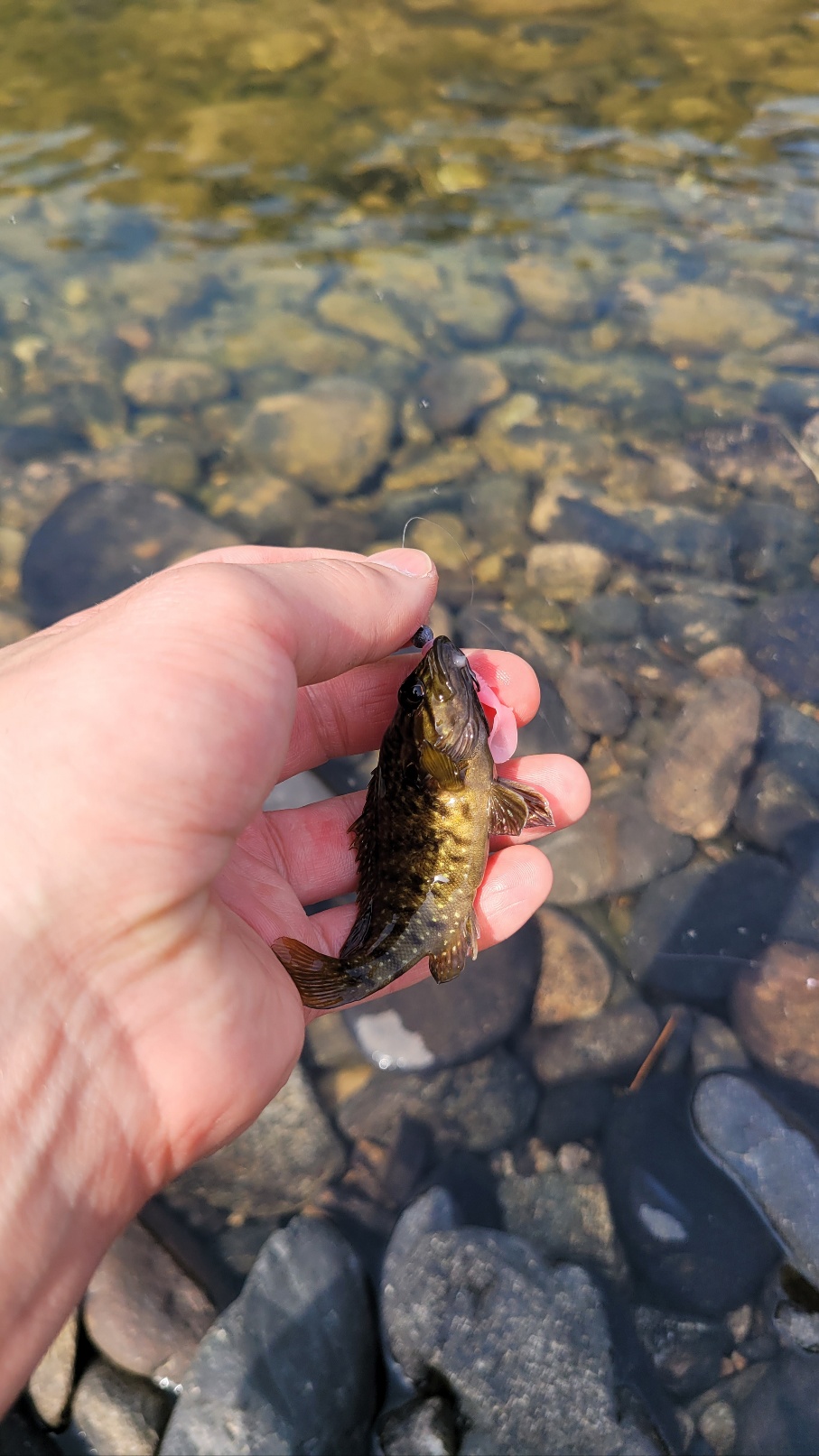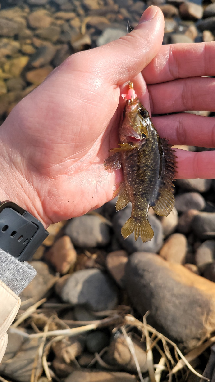 홍천강은 물 맑고 유속이 적당해 꺽지와 쏘가리가 서식하기 좋은 환경입니다. 이번에 찾은 포인트는 얕은 여울과 깊은 소가 함께 있는 구간이었는데요, 작은 꺽지를 몇 마리 낚은 후, 무려 50cm에 가까운 누치까지 낚았습니다!