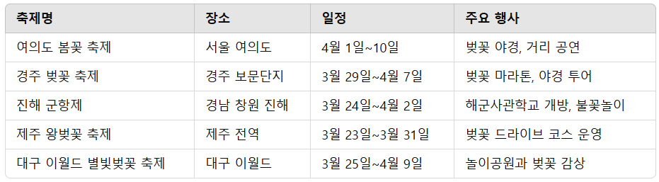 2025년 벚꽃 축제 일정